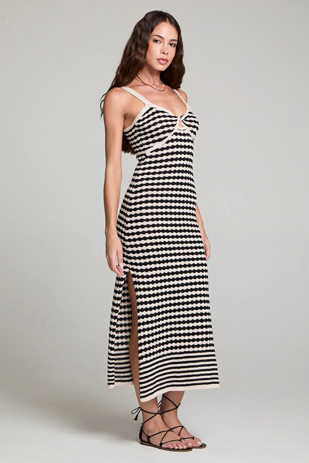 Detailing at the hem and straps lend modern verve.