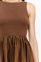 Lyon Brown Dress Understated elegance meets timeless romance in this sleeveless midi dress. A sleek, fitted bodice flows effortlessly into a full, gathered skirt, creating a silhouette that’s endlessly flattering and versatile. -Sleek sleeveless bodice for clean, modern lines -Full gathered skirt for graceful movement -Bold brown color for a confident, statement look -Lightweight fabric perfect for all-day comfort