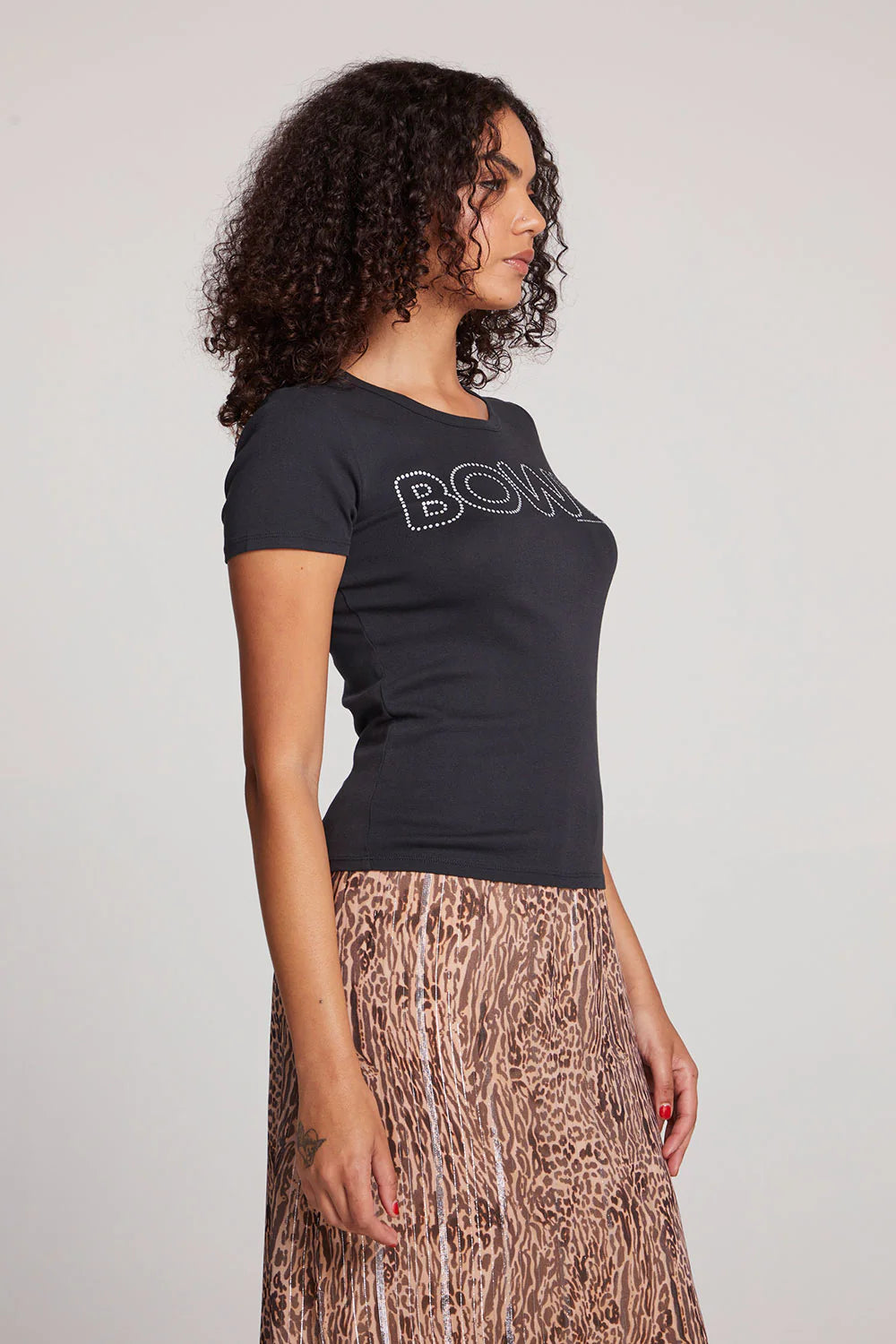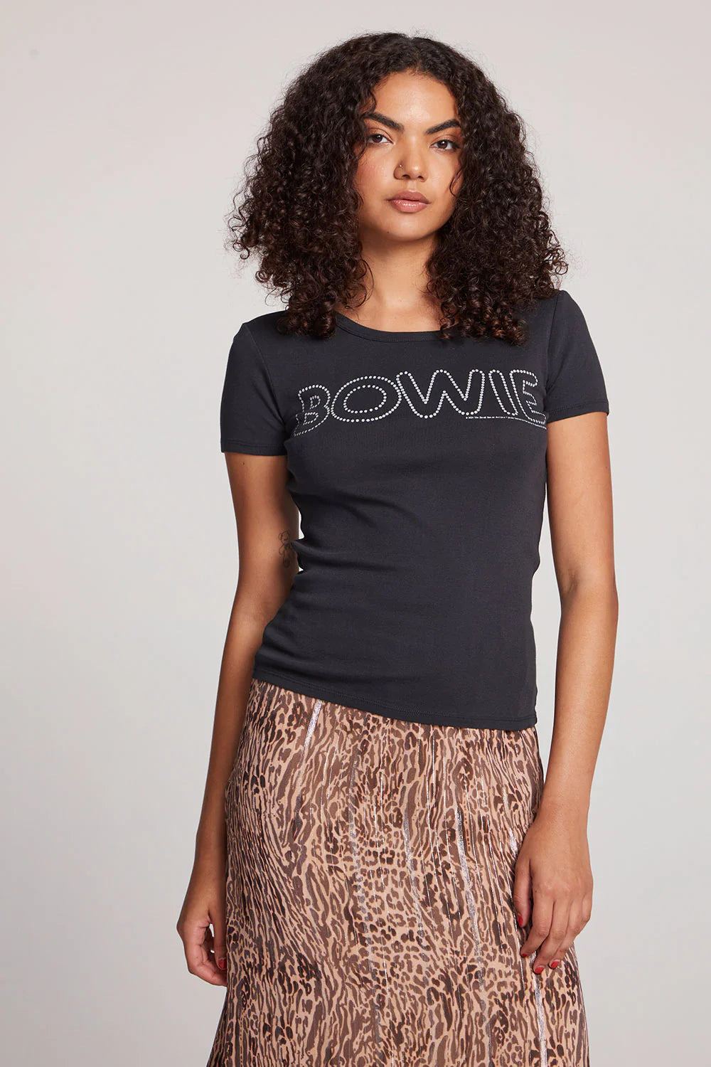 Step into the world of glam rock with this David Bowie Bowie Glitter soft baby rib Issaa Tee.