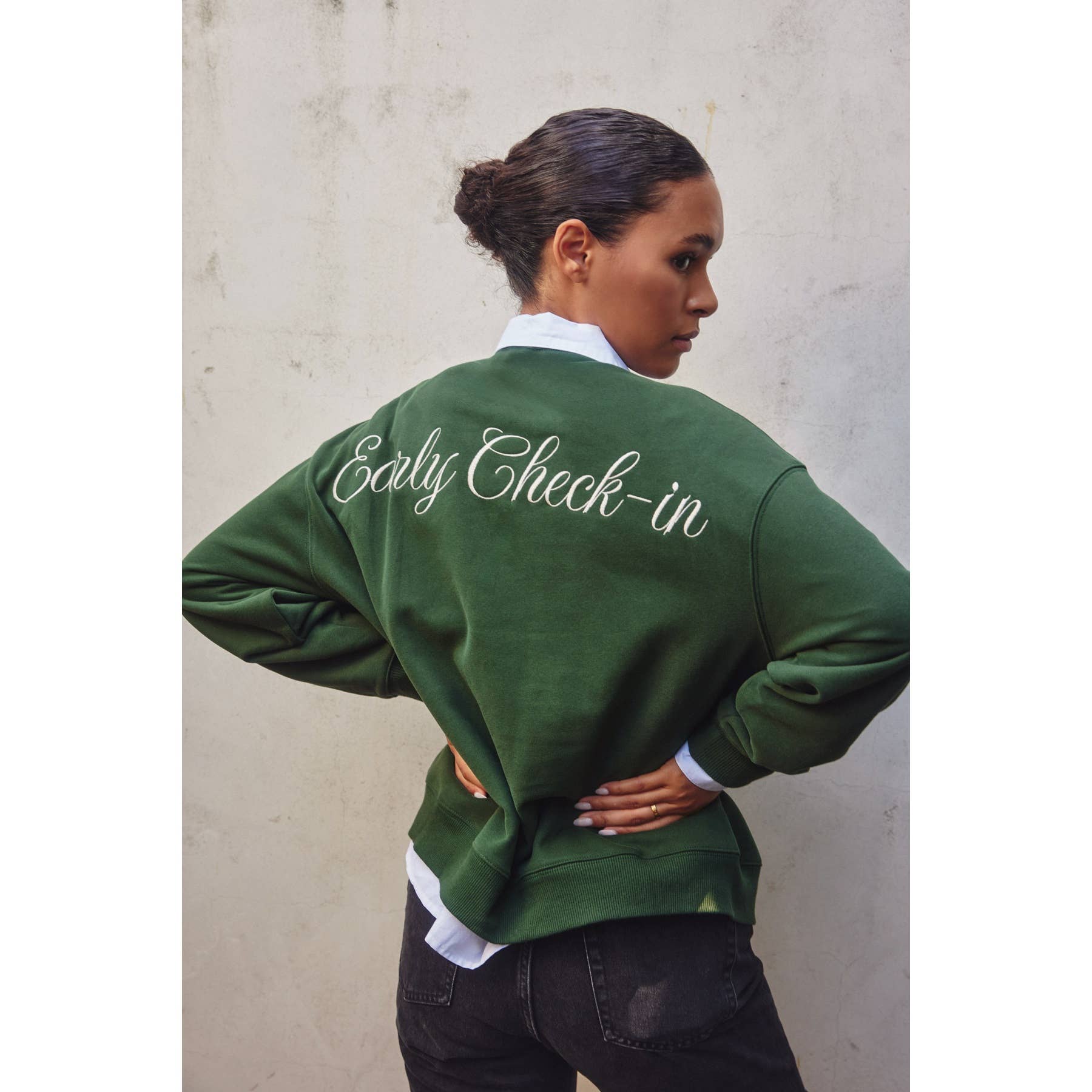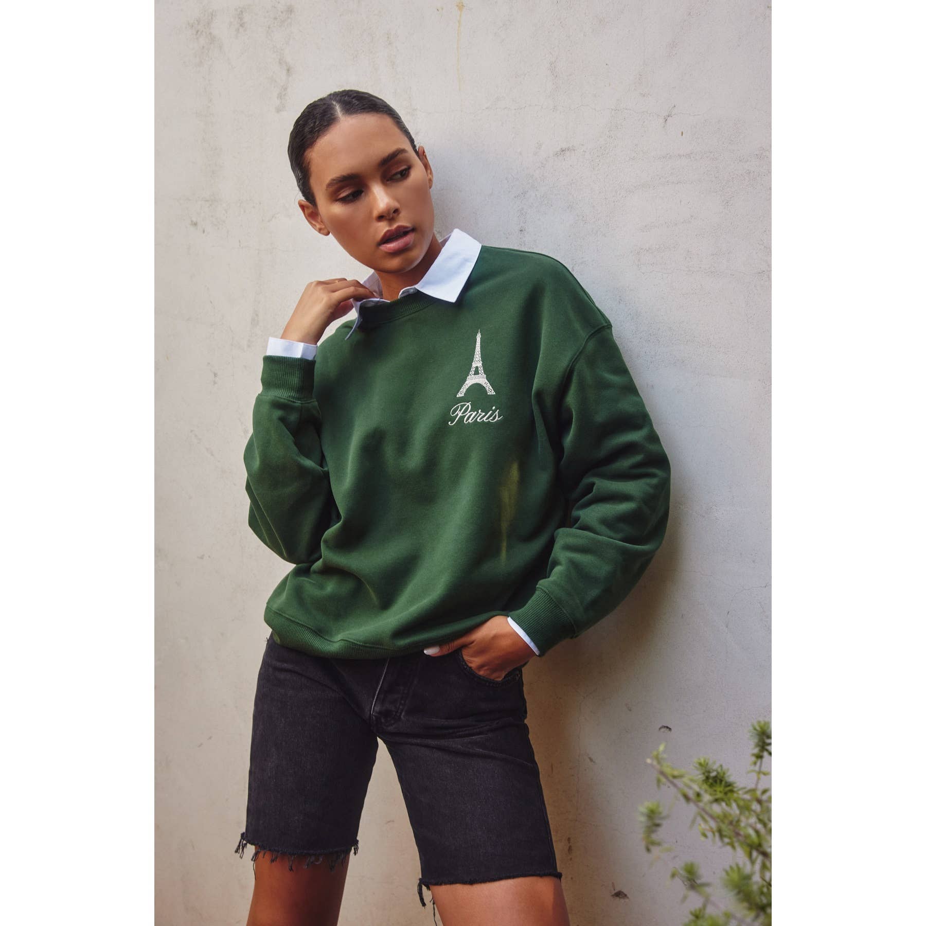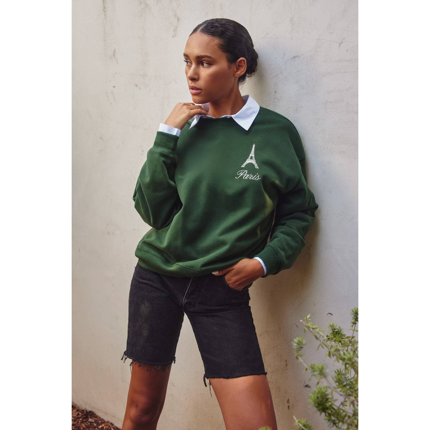 Travel-inspired embroidered sweatshirt. The model is wearing size Small. - Slightly oversized - High quality embroidery - Shell: 51% Polyester, 49% Cotton Contrast: 98% Cotton, 2%Spandex Lining: None