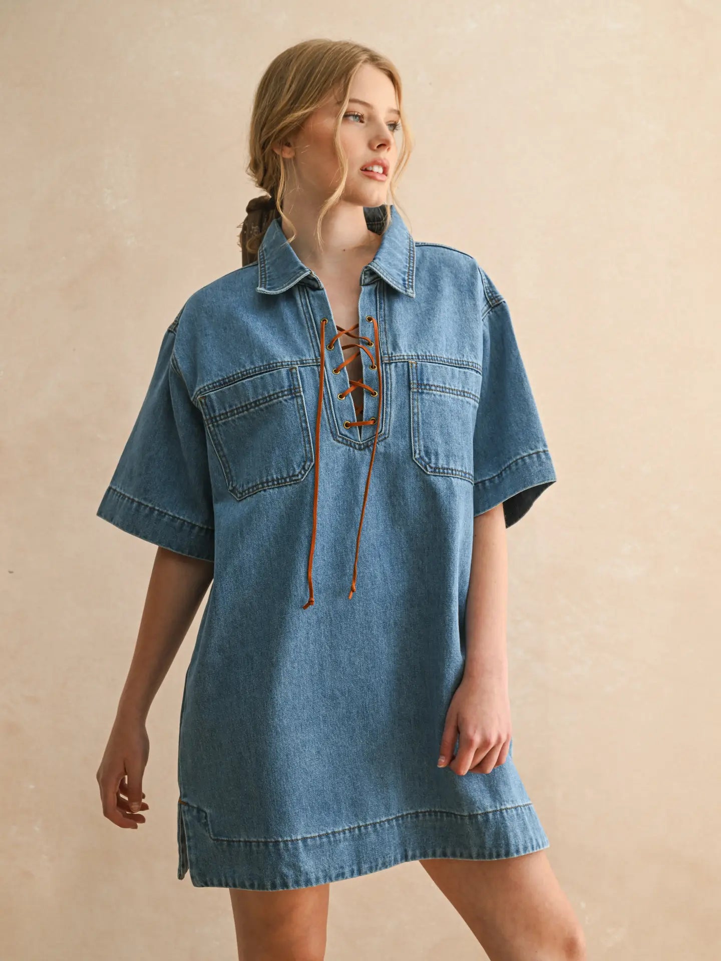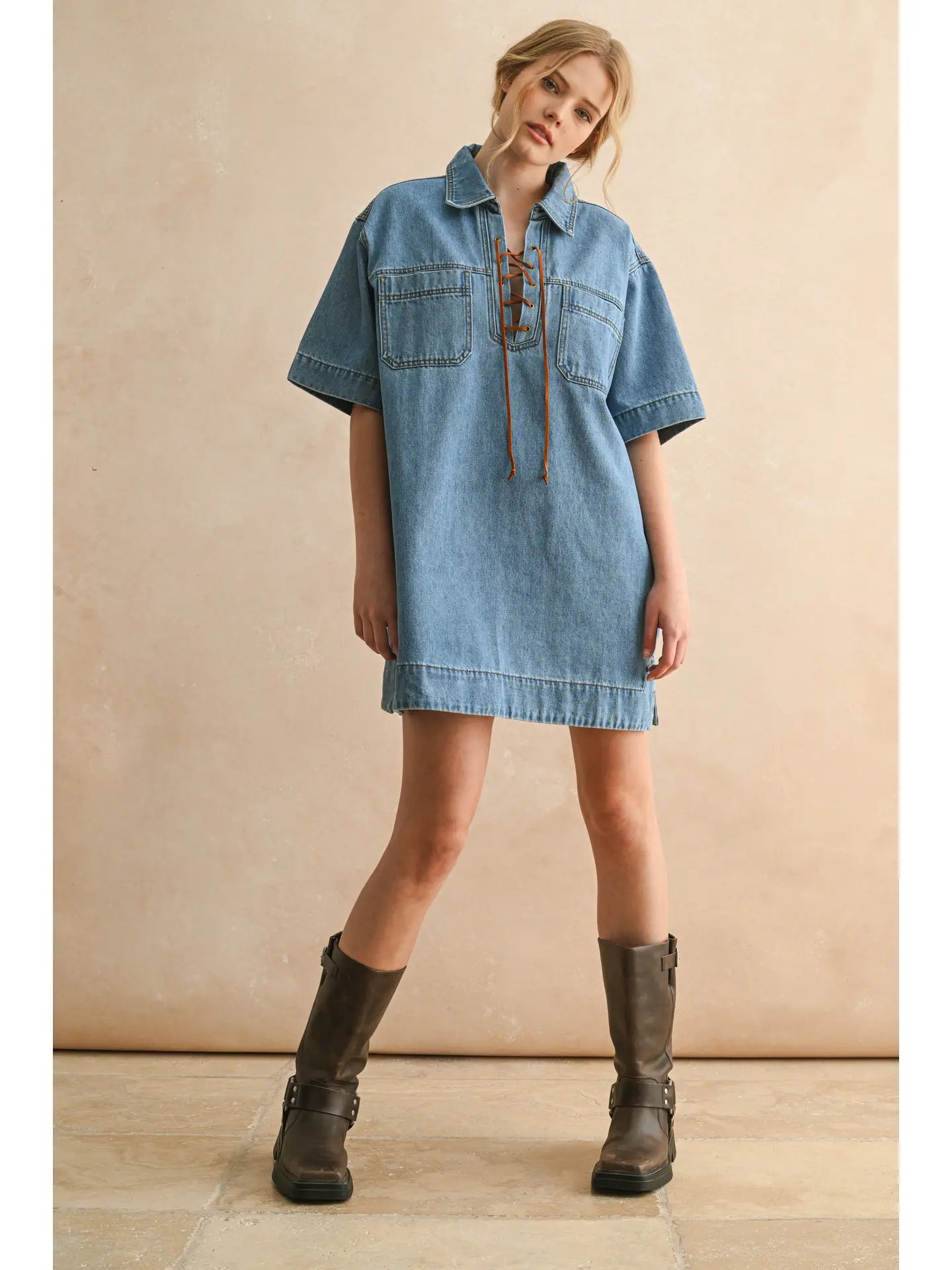 Lace Up Denim Dress