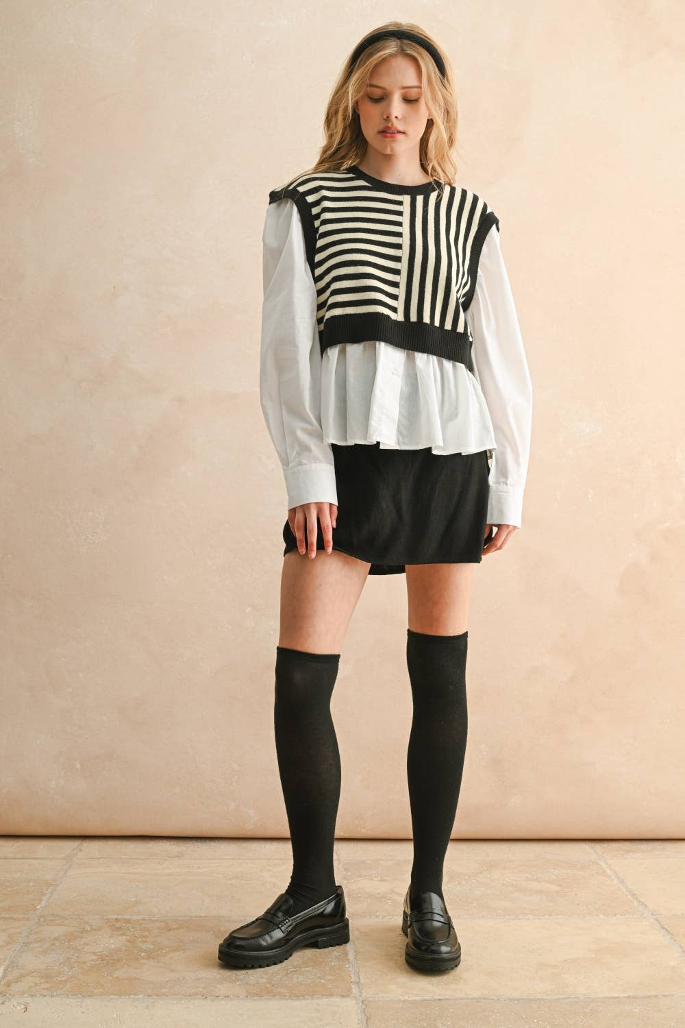 STRIPE PATTERN SWEATER COMBO BLOUSE * Model is wearing size small. Fit is true to size! Pair with jeans, black pants or mini!!!