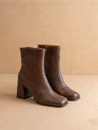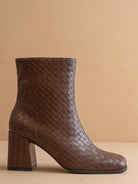 Refined texture, everyday polish. The DEMI stands out with its woven finish, structured square toe, and walkable block heel. A side zip keeps it sleek and functional, while the sculpted ankle fit pairs seamlessly with denim, trousers, or midi hems. Crafted in atelier-selected materials for elevated wear.