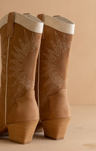 Rock on this festival season with this multi-textured cowboy boot. Western inspiration brings snake print, embroidery, and vegan leather together in this unique western boot.