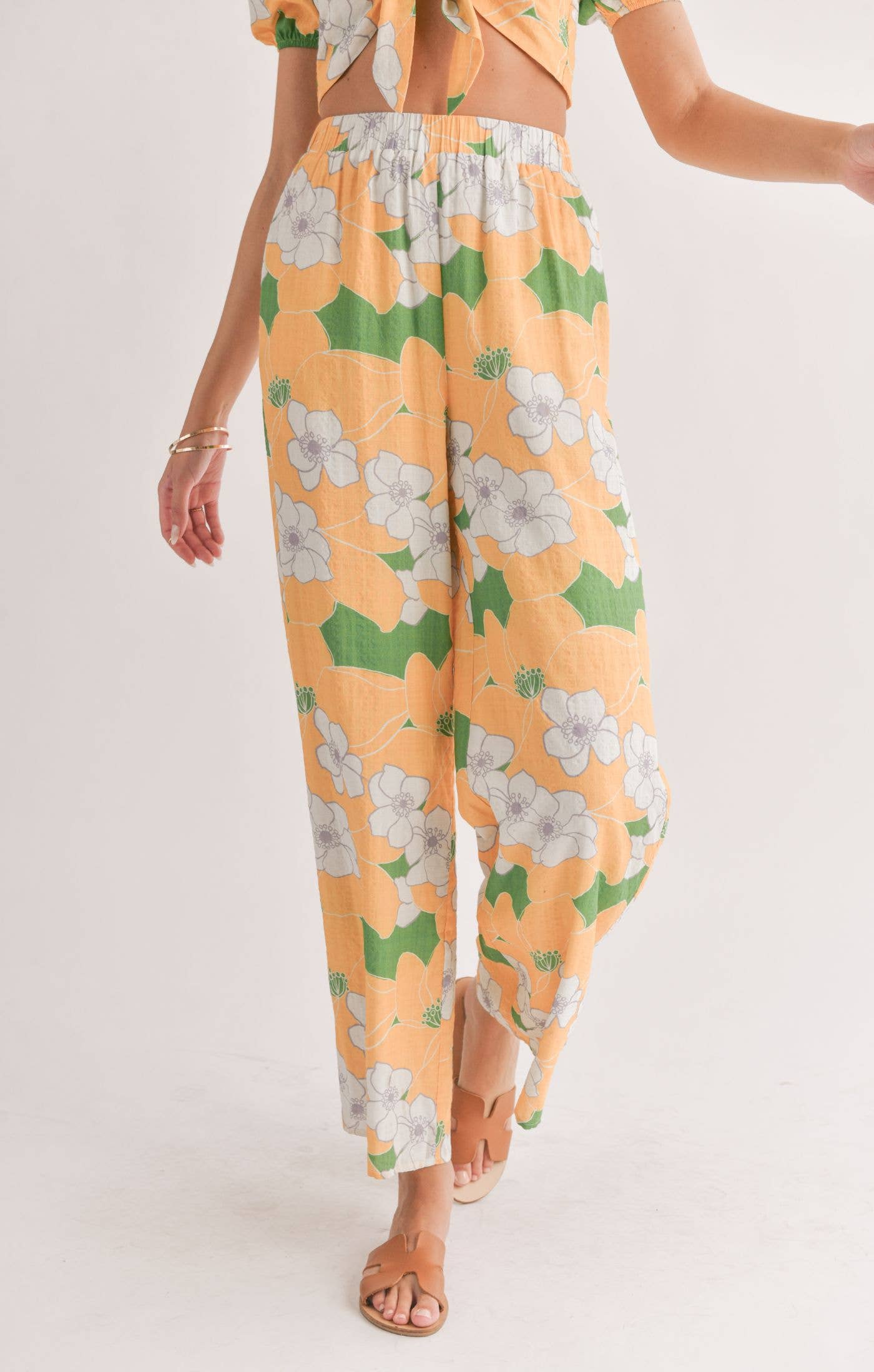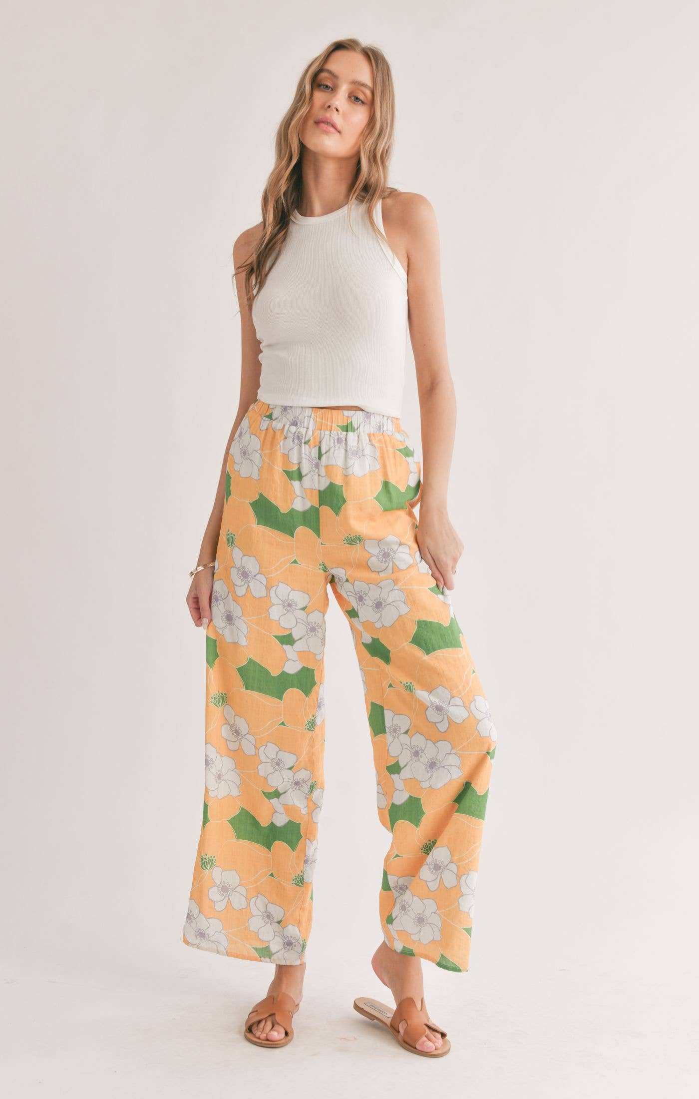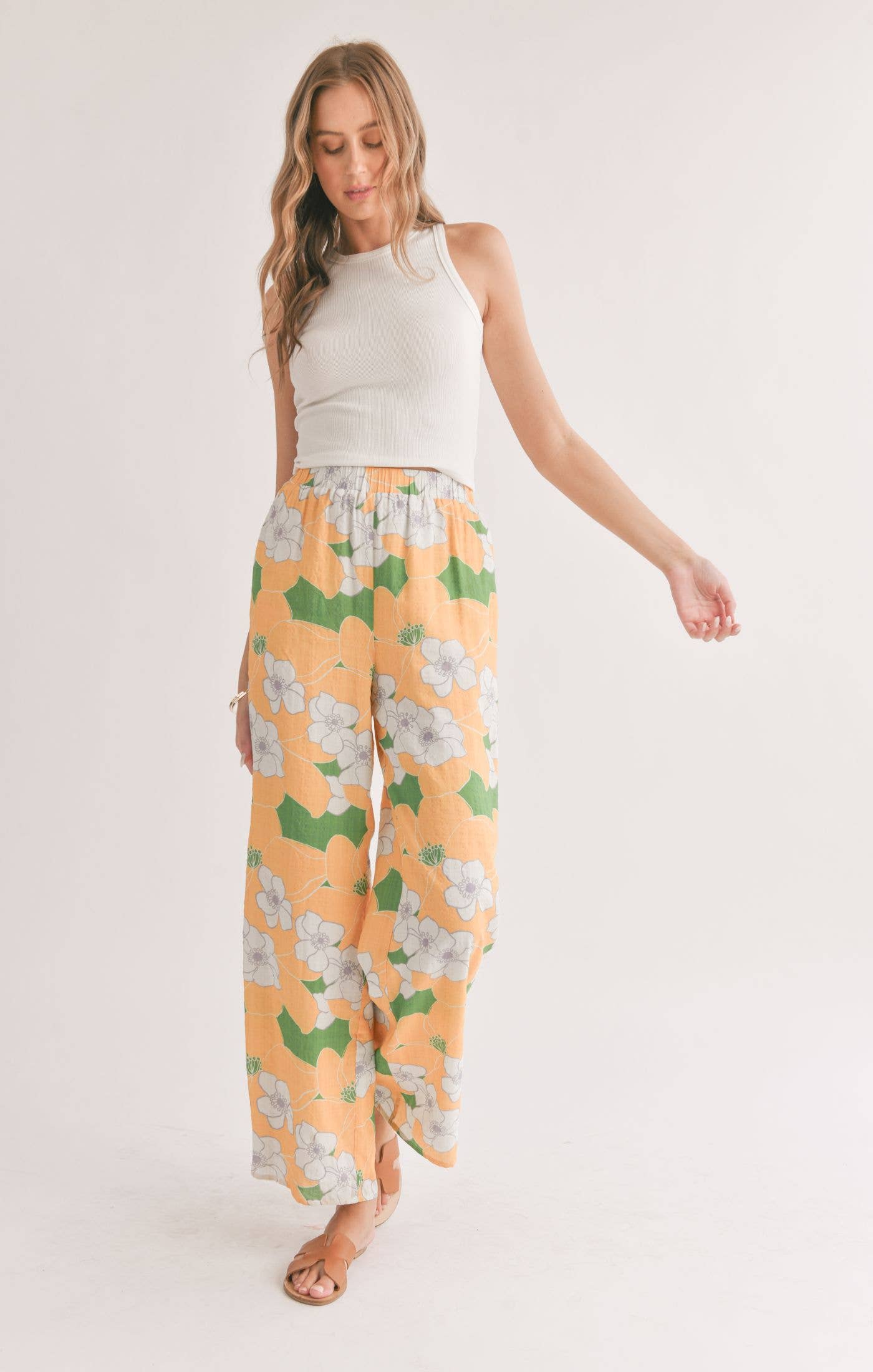 Wide leg elastic waist pant. Model is wearing a size small. Runs true to size.