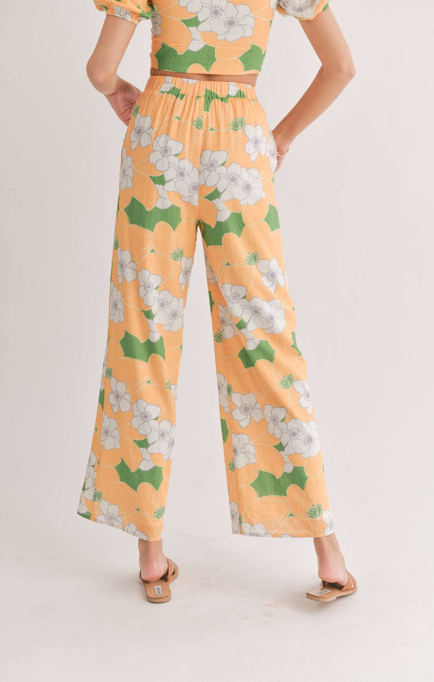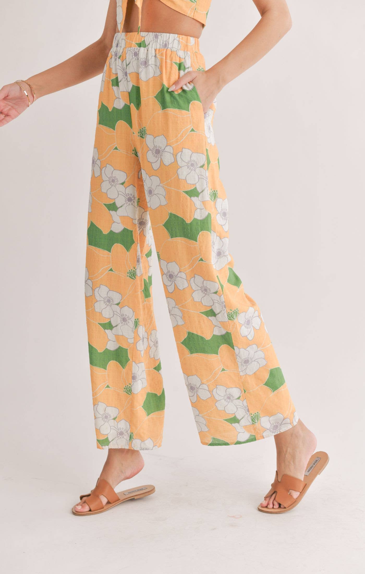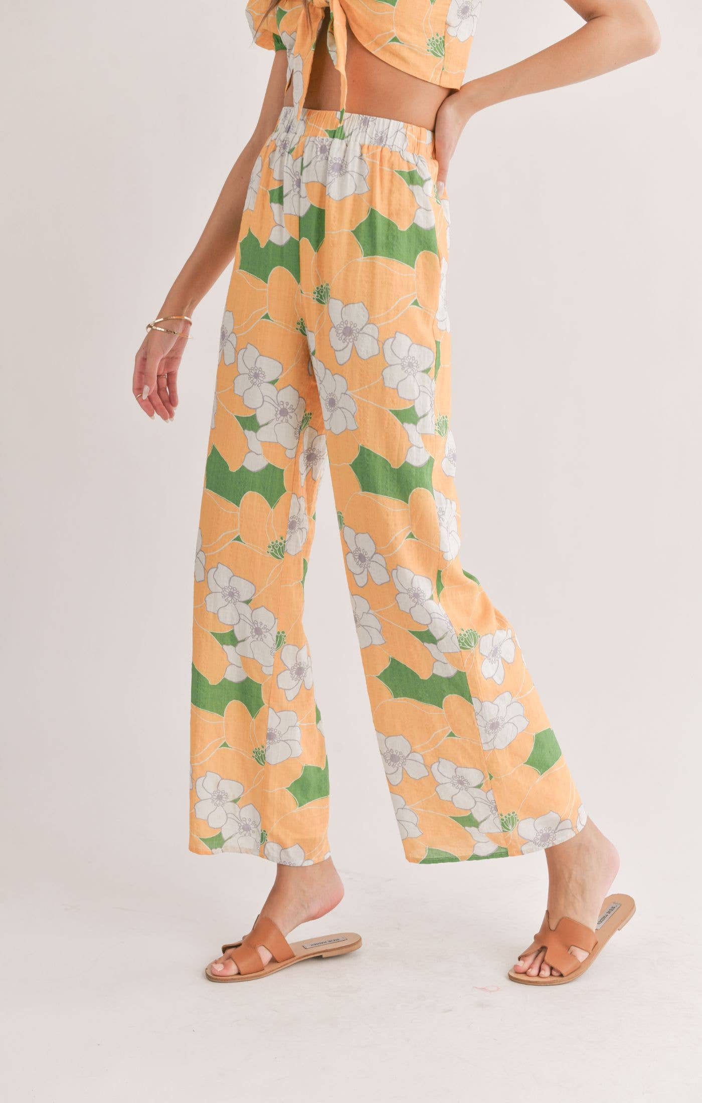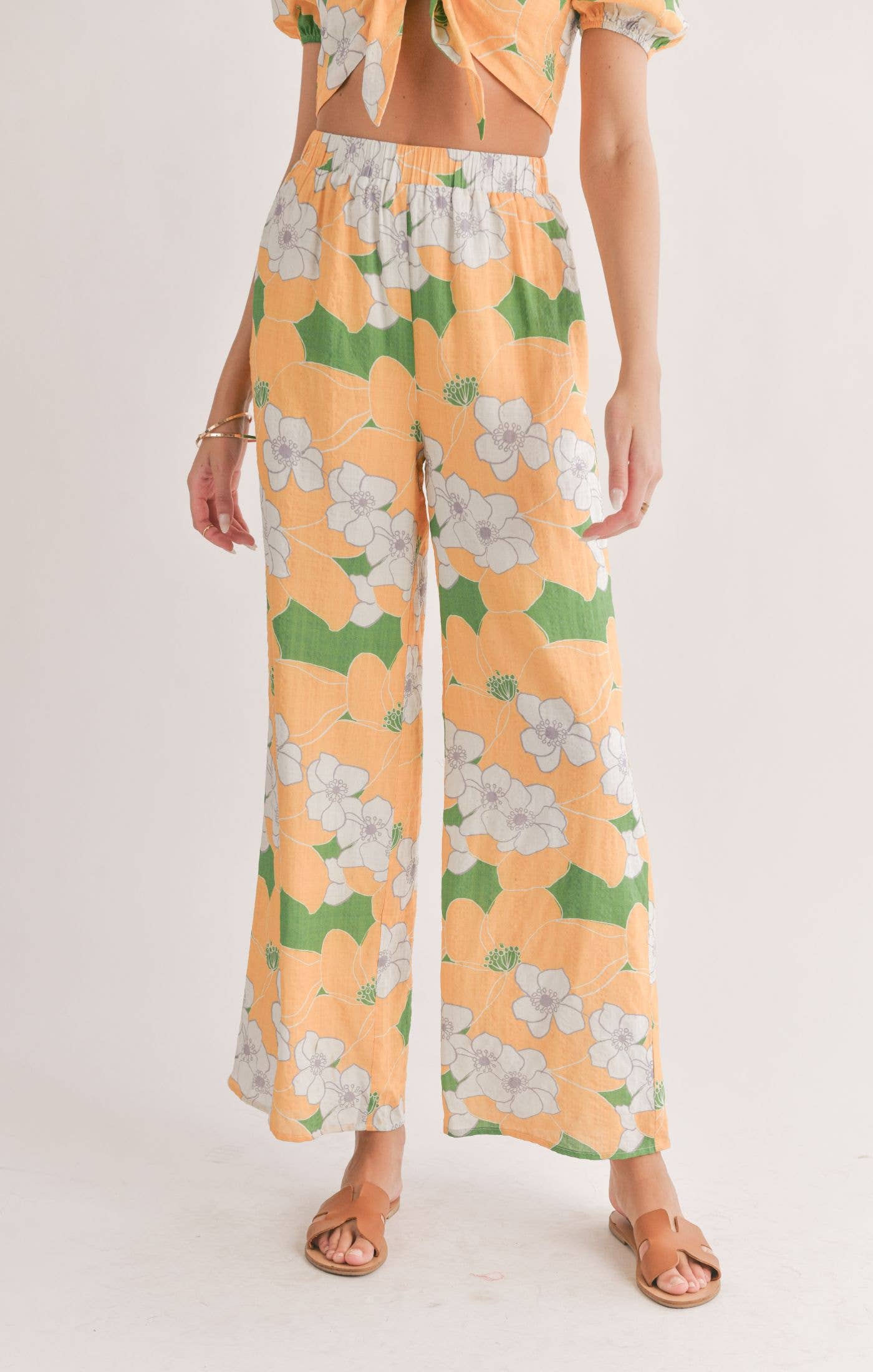 Wide leg elastic waist pant. Model is wearing a size small. Runs true to size.