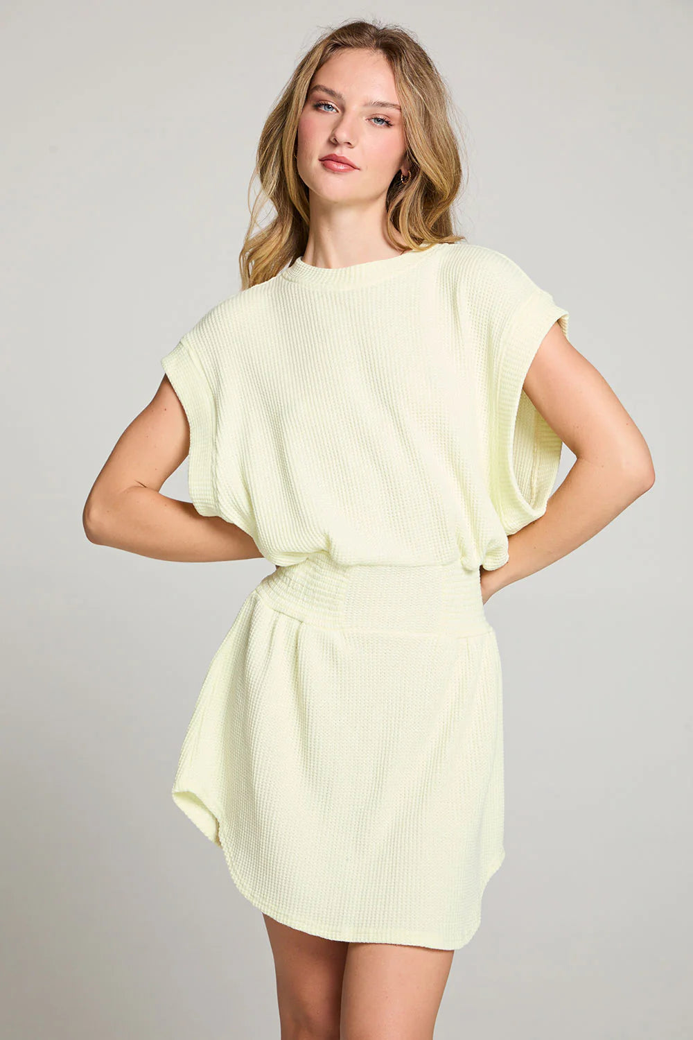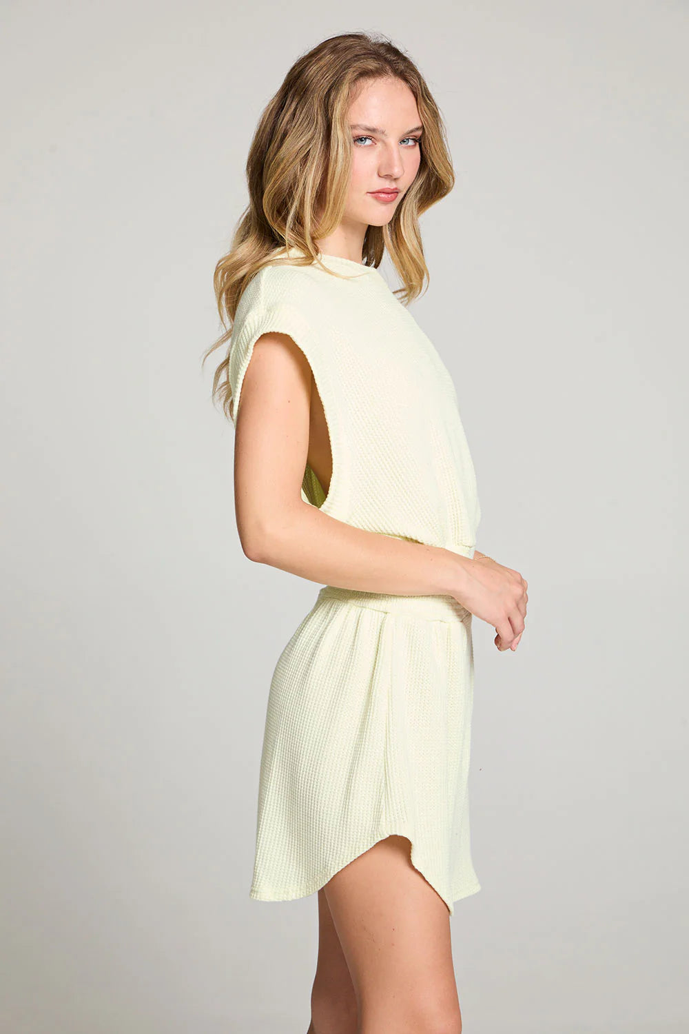 Made from a luxurious, waffle knit limon yellow fabric, it's perfect for dancing the night away or lounging in comfort.