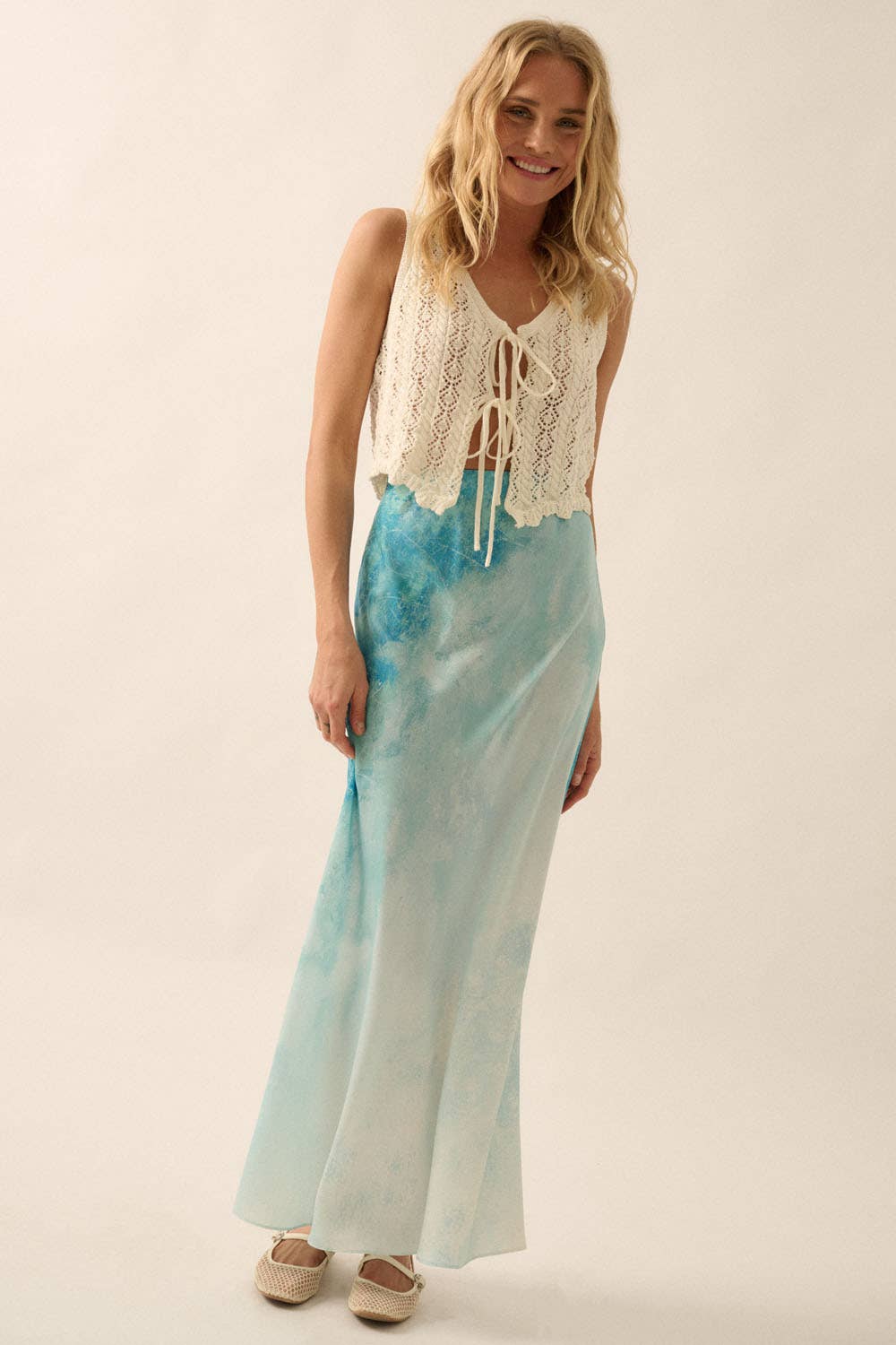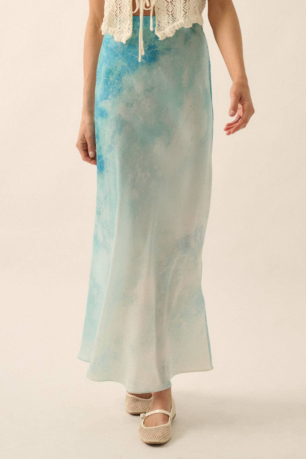 Tie Dye-Print Satin Bias-Cut Maxi Skirt