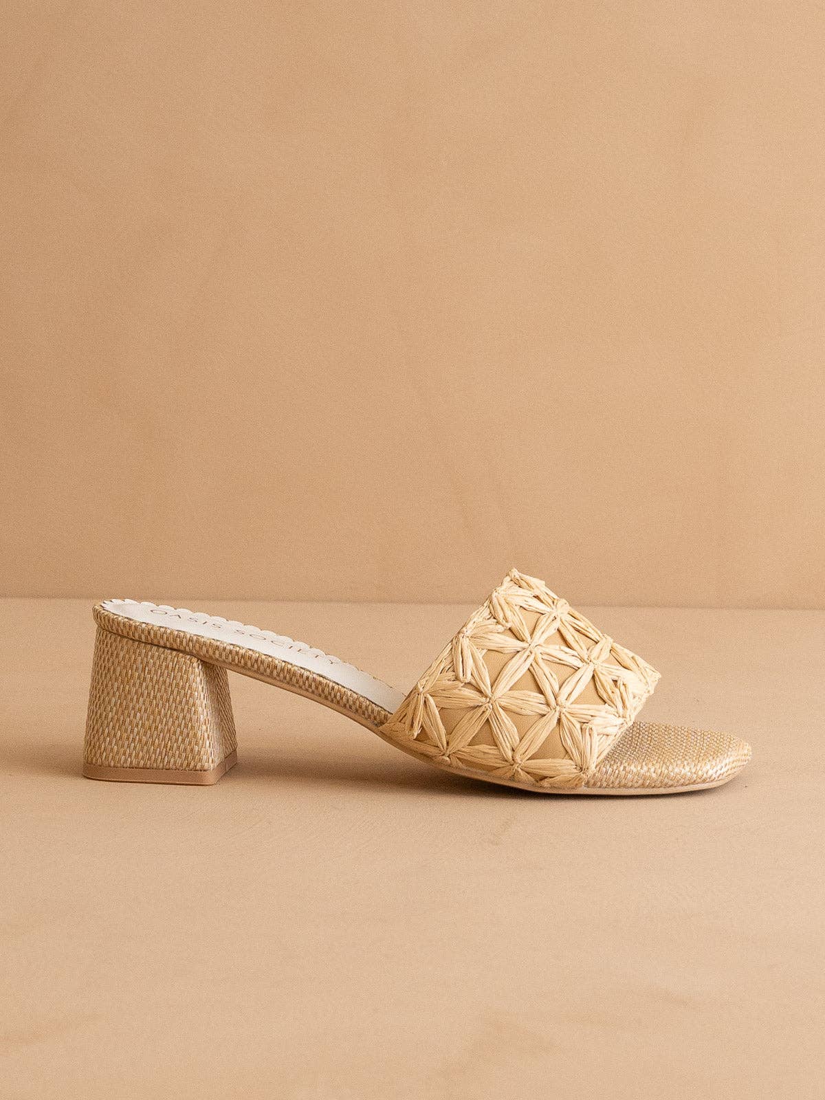 Breezy elegance meets timeless craftsmanship. The Winona features an intricately woven raffia upper and a sturdy block heel, blending artisanal texture with everyday versatility. Designed with our signature DreamCloud cushioned sole for unmatched comfort wherever your day takes you. Materials: * Upper Material: Raffia Upper * Insole Material: DreamCloud Cushion * Sole or Heel Material: Raffia Wrap Heel Details: * Brand: Oasis Society * Heel Height: 2.25" * Types of Closures: Slip On *
