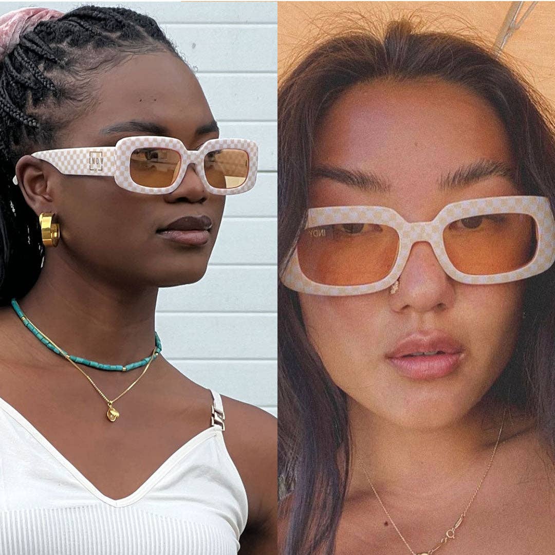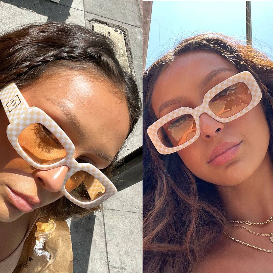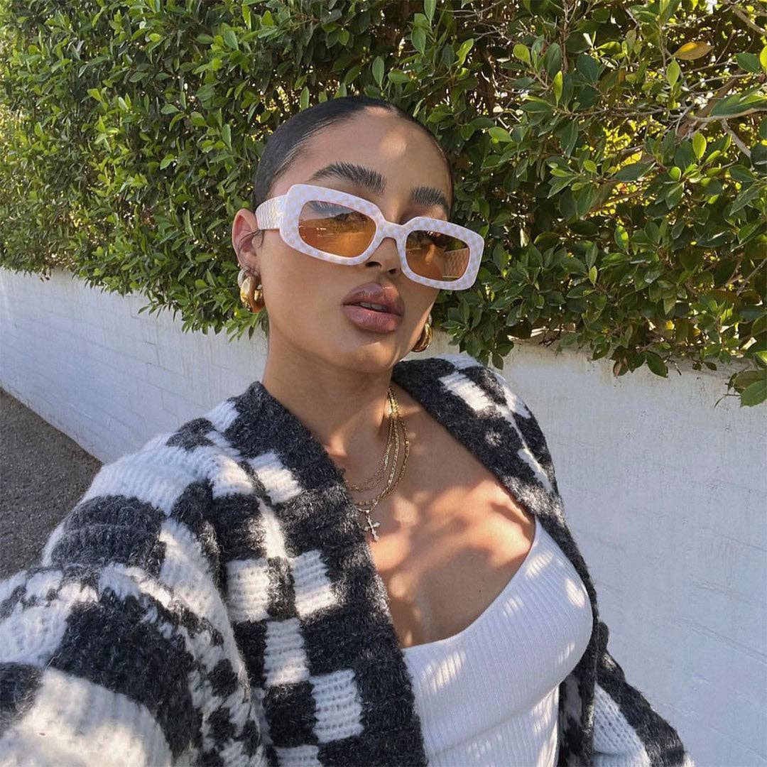 The Dolly frame is exactly the glossy pop your wardrobe has been searching for. It’s no secret checkered print is in high demand– dominate your looks with this cute pair. As seen in Cosmopolitan & Nylon Magazine.
