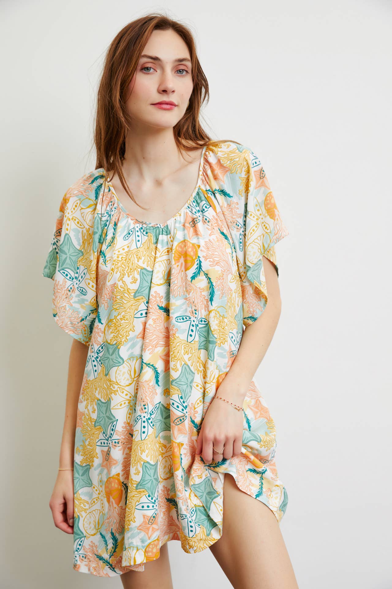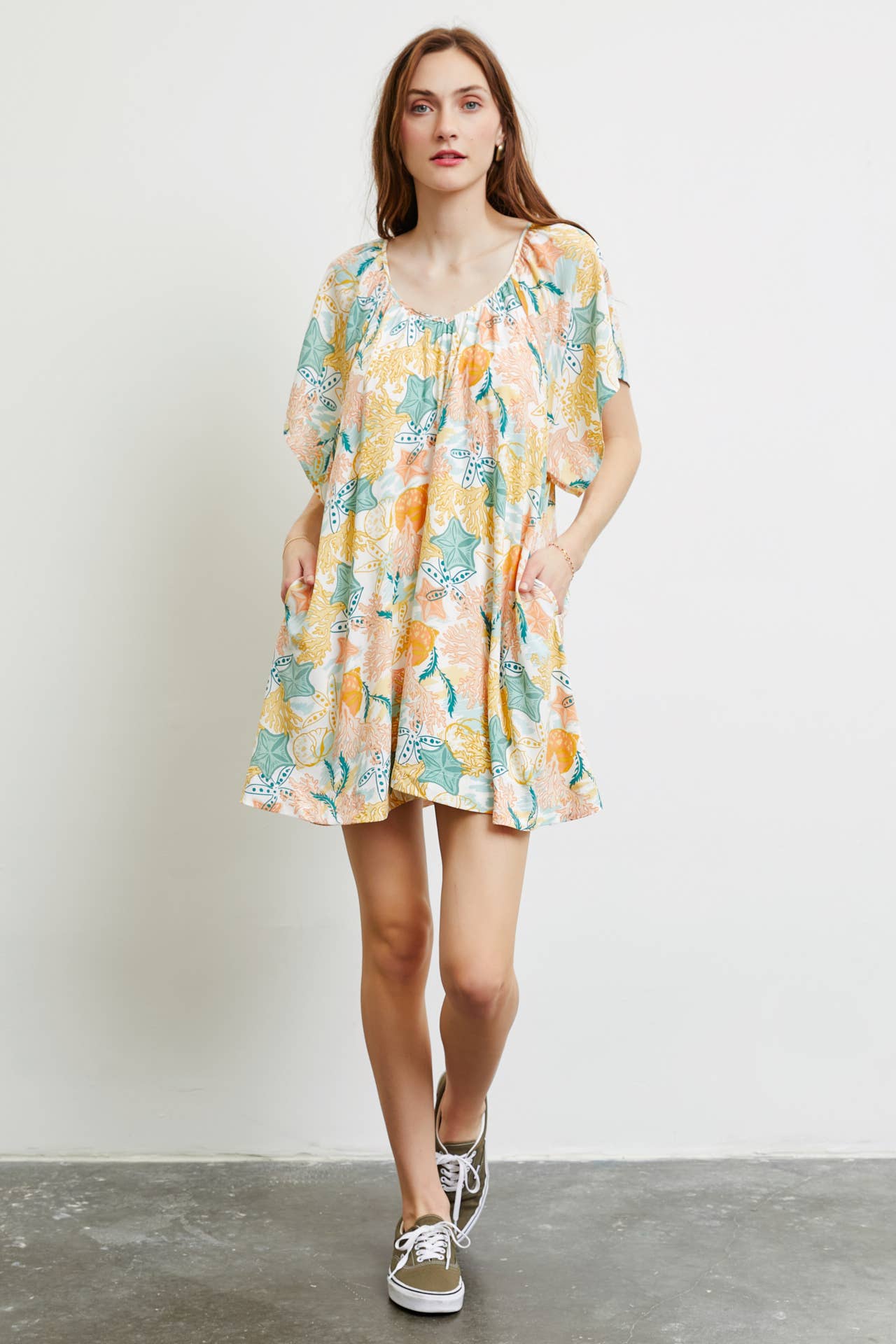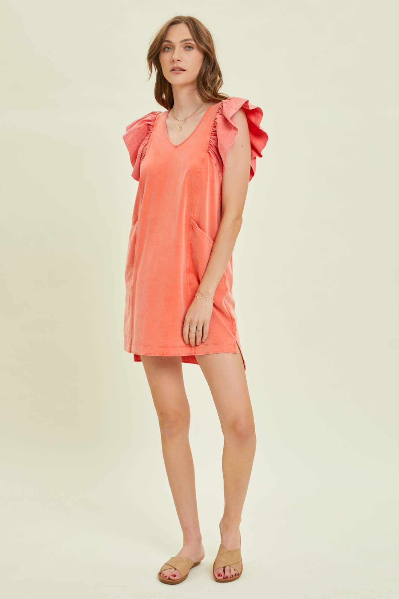 WASHED CHAMBRAY DENIM FLARE MINI DRESS