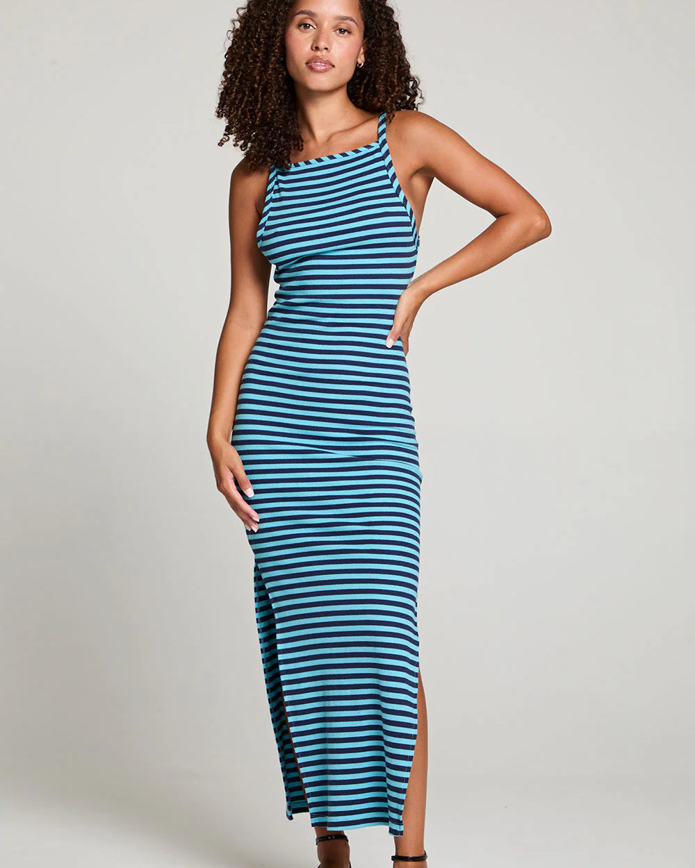 Delicate spaghetti straps delicately frame your shoulders, beckoning for a bold statement necklace.